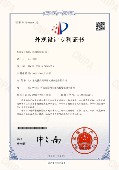 東光縣昌騰紙箱機(jī)械制造有限公司地處首都北京與濟(jì)南之間,水路交通都非常便利,是一家專(zhuān)注紙箱設(shè)備的制造型企業(yè)。本公司研發(fā)生產(chǎn)紙箱碰線(xiàn)機(jī)、紙箱印刷機(jī)聯(lián)動(dòng)線(xiàn)、全自動(dòng)紙箱打包機(jī)、上紙機(jī)等紙箱機(jī)械設(shè)備,制造經(jīng)驗(yàn)豐富,擁有技術(shù)研發(fā)實(shí)力,合格的檢測(cè)工序,嚴(yán)格的管理體系。